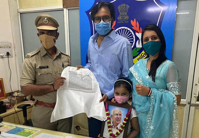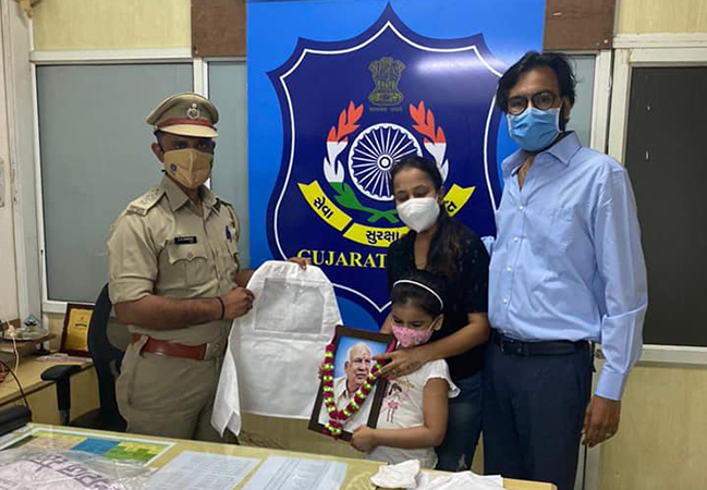 In Remembrance of Papaji, Distributed Advanced Covid Safety Gears for High risk areas Along with Family(Mishka Renu) in Presence of our efficacious Commissioner of Police Ajay Kumar ji Tomar, DY SP Ishwar Ji Parmar in association with Ritu Rathi #EkSoch, Dhruv Arvind Shah (Shahlon Silk industries Ltd.) to the department.