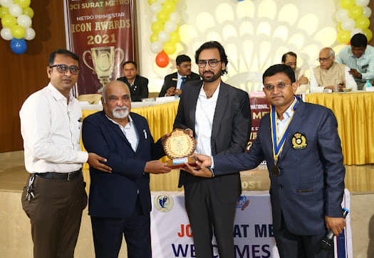 Junior Chamber International (JCI) is a 105 year old organization with more than 11 million members world over. Delighted to be invited as a ‘Guest of Honour’ in Junior Chamber International’s ‘Metro Prime Star Icons 2021’ Award Ceremony at Galaxy Banquet Hall. I had the opportunity of a serendipitous encounter with magnanimous fellow guests like Smt. Hemaliben Boghawala Ji (Hon’ble Mayor of Surat), Shri Kishorsinh Chavda Ji (Hon’ble Vice-Chancellor of VNSGU) and Shri Prem Sharda Ji (Hon’ble Founder President of Bharat Vikas Parishad) during the gathering. The event was wonderfully anchored by Dimpal Mishra, kudos to her! Special thanks to Shri Dipak Chokshi Ji for his invaluable support to this dazzling occasion. Last but not the least, I heartily extend my gratitude to the entire team of JCI for the honour.